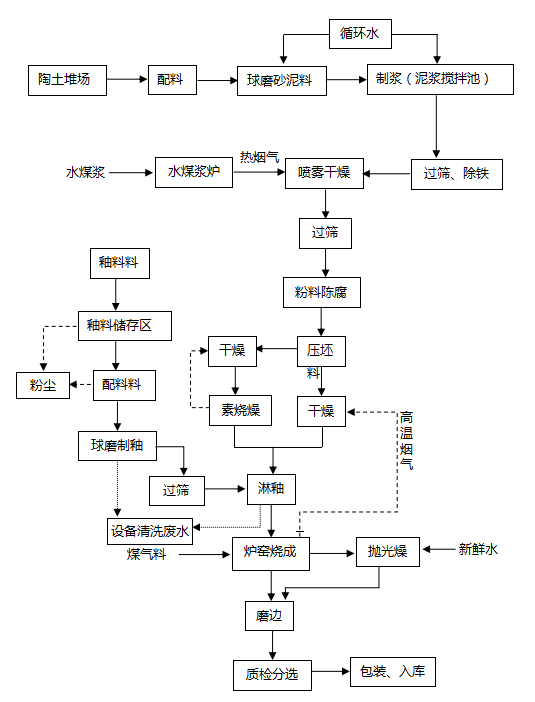 圖2.5-1 生產(chǎn)工藝流程圖 2.5.2主要生產(chǎn)設(shè)備 本項(xiàng)目主要生產(chǎn)設(shè)備、設(shè)施見(jiàn)表2.5-1,特種設(shè)備見(jiàn)表2.5-2。 表2.5-1 主要生產(chǎn)設(shè)備、設(shè)施一覽表 工序/線序號(hào)設(shè)備位置設(shè)備名稱規(guī)格和型號(hào)單位數(shù)量備注制釉線1車間1樓球磨機(jī)YE3-280-6 55KW(5T)臺(tái)14 2車間1樓球磨機(jī)YE2-250M-6 37KW(3T)臺(tái)1 3車間1樓球磨機(jī)YE2-180M-6 15KW(1.5T)臺(tái)1 42樓平臺(tái)上攪拌機(jī)WSS 3.7KW臺(tái)24 5釉線平臺(tái)上攪拌機(jī)WSS 3KW臺(tái)12 6車間1樓振動(dòng)篩YZUL-15-2 1.1KW(1米)臺(tái)2 7車間1樓振動(dòng)篩YZUL-15-2 1.5KW(2米)臺(tái)21 82樓平臺(tái)上電動(dòng)葫蘆2.8T 8KW臺(tái)2 9車間1樓自動(dòng)除鐵機(jī)1.8萬(wàn)磁 3kw臺(tái)2 平臺(tái)線1出磚線下磚機(jī)順發(fā)單邊上下磚機(jī) 8kw臺(tái)6 2出磚線干式切割機(jī)蘭科 XTQ-4 8KW臺(tái)1 3素出磚平臺(tái)傳動(dòng)電機(jī)YE2-802-4 0.75KW臺(tái)50 4釉出磚傳動(dòng)電機(jī)YE2-802-4 0.75KW臺(tái)99 5素長(zhǎng)平臺(tái)傳動(dòng)電機(jī)YE2-802-4 1.1KW臺(tái)58 6釉長(zhǎng)平臺(tái)傳動(dòng)電機(jī)YE2-802-4 1.1KW臺(tái)47 7素、釉平臺(tái)自動(dòng)分線機(jī) 臺(tái)2 煤氣站1主樓煤氣發(fā)生爐4.6m臺(tái)2一期二線建1臺(tái)2主樓1樓工藝風(fēng)機(jī)TEV2-315S-2 110KW臺(tái)4 3加壓房加壓機(jī)YBX3-315L-2 160KW臺(tái)3 4煤場(chǎng)喂料機(jī)40T 4KW臺(tái)1 5煤場(chǎng)除塵機(jī)YE2-315M-4 132KW臺(tái)1 6煤場(chǎng)輸送帶YE3-112M-4 3KW臺(tái)5 7煤場(chǎng)YE3-112M-4 4KW臺(tái)7 8煤場(chǎng)YE3-112M-4 5.5KW臺(tái)3 9主樓YE3-112M-4 4KW臺(tái)2 10煤場(chǎng)滾筒篩YE3-160M-4 7.5KW臺(tái)1 施釉線1入磚線下磚機(jī)順發(fā)單邊上下磚機(jī) 8kw臺(tái)6 2施釉車間轉(zhuǎn)坯機(jī)1000mm 0.75kw套24 3施釉車間傳動(dòng)電機(jī)YE2-802-4 0.75KW臺(tái)360 4施釉車間傳動(dòng)電機(jī)YE2-802-4 0.55KW臺(tái)15 5噴墨房噴墨機(jī)TQ*325-4-SC(2)+MC(2)-19042705 14kw臺(tái)6 7施釉車間毛刷機(jī)800mm臺(tái)6 8施釉車間振動(dòng)篩YZUL-15-2 0.75KW(800mm)臺(tái)14 9施釉車間加熱器220V 4.5kw臺(tái)38 10施釉車間除塵機(jī)YE3-280M-4 75KW臺(tái)1 11施釉車間高腳泵YE2-802-4 0.75KW臺(tái)14 12施釉車間吹風(fēng)機(jī)YE2-802-4 0.75KW臺(tái)52 13施釉車間吹塵機(jī)YE2-802-4 1.5KW臺(tái)6 機(jī)電機(jī)修1馬路邊脫硫塔莫森環(huán)保套1 2脫硫塔循環(huán)泵YE2-315L-4 185KW臺(tái)2 3脫硫塔螺旋風(fēng)機(jī)YE2-200L-4 30KW臺(tái)2 4脫硫塔循環(huán)池?cái)嚢鑉E3-160L-4 15KW臺(tái)1 5脫硫塔抽石灰渣電機(jī)YE3-132S1-2 5.5KW臺(tái)2 6脫硫塔加藥泵YE3-100L2-4 3KW臺(tái)2 7脫硫塔工藝泵YE3-160L-2 18.5KW臺(tái)2 8脫硫塔過(guò)濾泵電機(jī)YE3-132S1-2 5.5KW臺(tái)2 9脫硫塔制藥攪拌機(jī)YE3-100L2-4 3KW臺(tái)1 10脫硫塔螺旋輸送電機(jī)YE2-180M-4 18.5KW臺(tái)1 11脫硫塔過(guò)濾池?cái)嚢铏C(jī)YE3-112M-4 4KW臺(tái)1 12空壓機(jī)房空氣壓縮機(jī)BMF75-811 55KW臺(tái)4 窯爐線1釉燒窯排潮風(fēng)機(jī)YE2-280S-4 75KW臺(tái)2 2釉燒窯一級(jí)排煙風(fēng)機(jī)YE2-355M-4 250KW臺(tái)2 3釉燒窯二級(jí)排煙風(fēng)機(jī)YE2-315S-4 110KW臺(tái)2 4釉燒窯一級(jí)助燃風(fēng)機(jī)YE2-280M-2 90KW臺(tái)2 5釉燒窯二級(jí)助燃風(fēng)機(jī)YE2-280S-2 75KW臺(tái)2 6釉燒窯急冷風(fēng)機(jī)YE2-280S-2 75KW臺(tái)3 7釉燒窯抽熱風(fēng)機(jī)YE2-315L2-4 200KW臺(tái)2 8釉燒窯直冷風(fēng)機(jī)YE2-280S-2 75KW臺(tái)2 9釉燒窯尾冷風(fēng)機(jī)YE2-280S-6 45KW臺(tái)1 10釉燒窯傳動(dòng)電機(jī)NCJF04Y-Y90L4-1.5-23 1.5KW臺(tái)135 11素?zé)G排潮風(fēng)機(jī)YE2-315L-4 185KW臺(tái)2 12素?zé)G一級(jí)排煙風(fēng)機(jī)YE2-355M-4 250KW臺(tái)2 13素?zé)G二級(jí)排煙風(fēng)機(jī)YE2-315S-4 110KW臺(tái)2 14素?zé)G一級(jí)助燃風(fēng)機(jī)YE2-280M-2 90KW臺(tái)2 15素?zé)G二級(jí)助燃風(fēng)機(jī)YE2-280S-2 75KW臺(tái)2 16素?zé)G急冷風(fēng)機(jī)YE2-280S-2 75KW臺(tái)3 17素?zé)G抽熱風(fēng)機(jī)YE2-315L2-4 200KW臺(tái)2 18素?zé)G直冷風(fēng)機(jī)YE2-280S-2 75KW臺(tái)2 19素?zé)G尾冷風(fēng)機(jī)YE2-280S-6 45KW臺(tái)1 20素?zé)G傳動(dòng)電機(jī)NCJF04Y-Y90L4-1.5-23 1.5KW臺(tái)100 21素?zé)稍锔G傳動(dòng)電機(jī)NCJF04Y-Y90L4-1.5-43 1.5KW臺(tái)60 22脫硫管線引風(fēng)機(jī)YE3-355L3-6 315KW臺(tái)1 分選線1檢選車間磨邊機(jī)800mm 115KW臺(tái)12 2檢選車間除塵機(jī)YE2-280M-4 90KW臺(tái)1 3檢選車間YE2-280S-4 75KW臺(tái)1 4檢選車間覆膜機(jī)蘭科立輝機(jī)電SKT-800 3KW臺(tái)6 5檢選車間自動(dòng)打包機(jī)多麥 8KW臺(tái)6 6檢選車間手動(dòng)打包機(jī)MH-101A 1KW臺(tái)2 7檢選車間自動(dòng)碼垛機(jī)多麥 8KW臺(tái)6 8檢選車間疊磚機(jī)10KW臺(tái)6 9檢選車間柱塞泵YE2-180L-4 22KW臺(tái)2 壓機(jī)線1壓機(jī)車間薩克米壓機(jī)PHC3500 100KW臺(tái)6 2壓機(jī)車間料車明協(xié)400*800 3kw臺(tái)6 3壓機(jī)車間除塵器YX3-315M-4 132KW臺(tái)1 4壓機(jī)車間翻坯器YS7124 3KW臺(tái)6 5壓機(jī)車間磨坯機(jī)1000mm 2.2kw臺(tái)6 6平臺(tái)連接線傳動(dòng)電機(jī)YE2-802-4 0.75KW臺(tái)122 7壓機(jī)車間送粉輸送帶YE3-112M-4 3KW臺(tái)20 8壓機(jī)車間YE3-112M-4 4KW臺(tái)4 9壓機(jī)車間YE3-132M-4 5.5KW臺(tái)2 備料線1噴霧塔噴霧塔12000型臺(tái)1 2噴霧塔風(fēng)機(jī)YE2-400L1-6 400KW臺(tái)1 3噴霧塔振動(dòng)篩YZUL-15-2 1.5KW臺(tái)12 4噴霧塔柱塞泵YE2-
