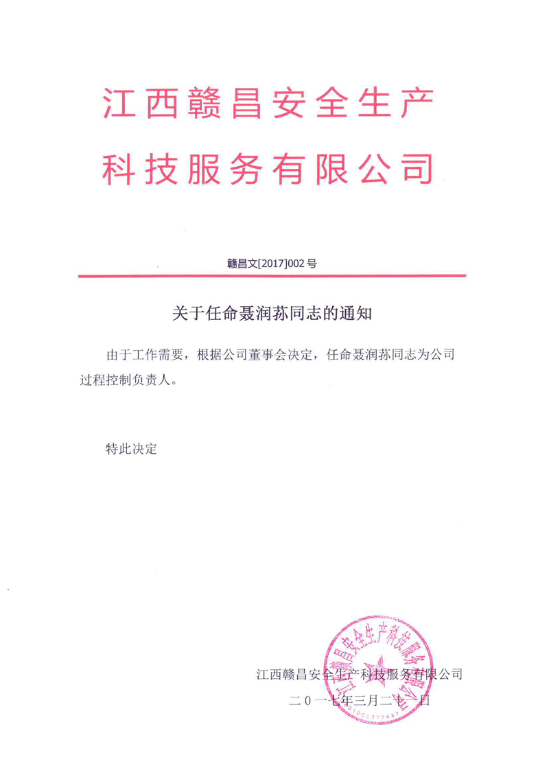 關于董事會任命過程控制負責人